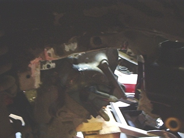 - Malletized firewall cross beam next to motor mount to clear banjo bolt on transmission.