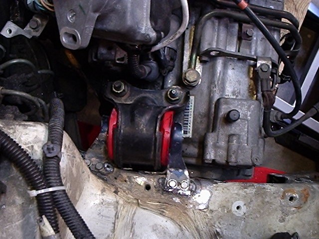 I used the EG9 civic bracket and the EG9 mount with aftermarket inserts. Shown here tack welded in place.